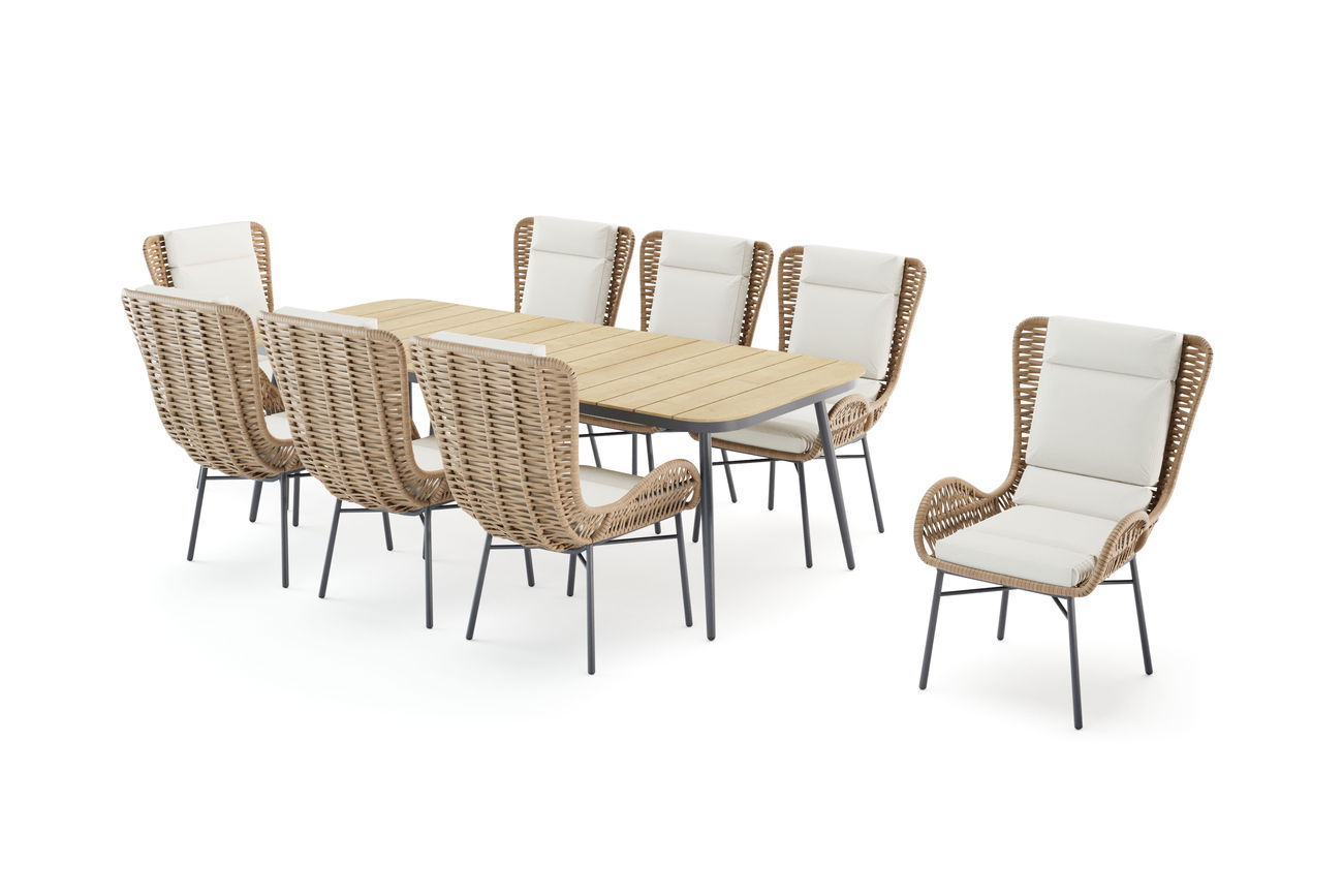 Lascia che l'estate entri nel tuo giardino e goditi momenti conviviali o ore di relax con il set Mistral Dining 8. (Immagine simile)