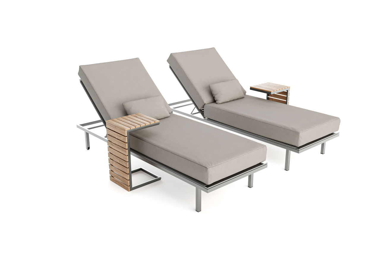 Le fodere dei lettini sono in un discreto tortora che si integra senza sforzo in qualsiasi paesaggio di giardino o terrazza. Inoltre, vengono forniti due cuscini decorativi coordinati che non solo aumentano il comfort, ma creano anche un'atmosfera calda e accogliente.