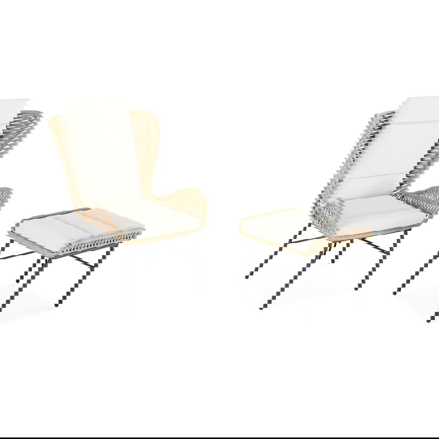 Materiali premium Il set è realizzato in polyrattan intrecciato a mano al 100%, ruvido e impermeabile. La superficie monocolore tinta in massa in bianco brillante garantisce un'eleganza senza tempo. Il rivestimento in Olefin resistente è pre-impregnato e offre alta resistenza e durabilità.